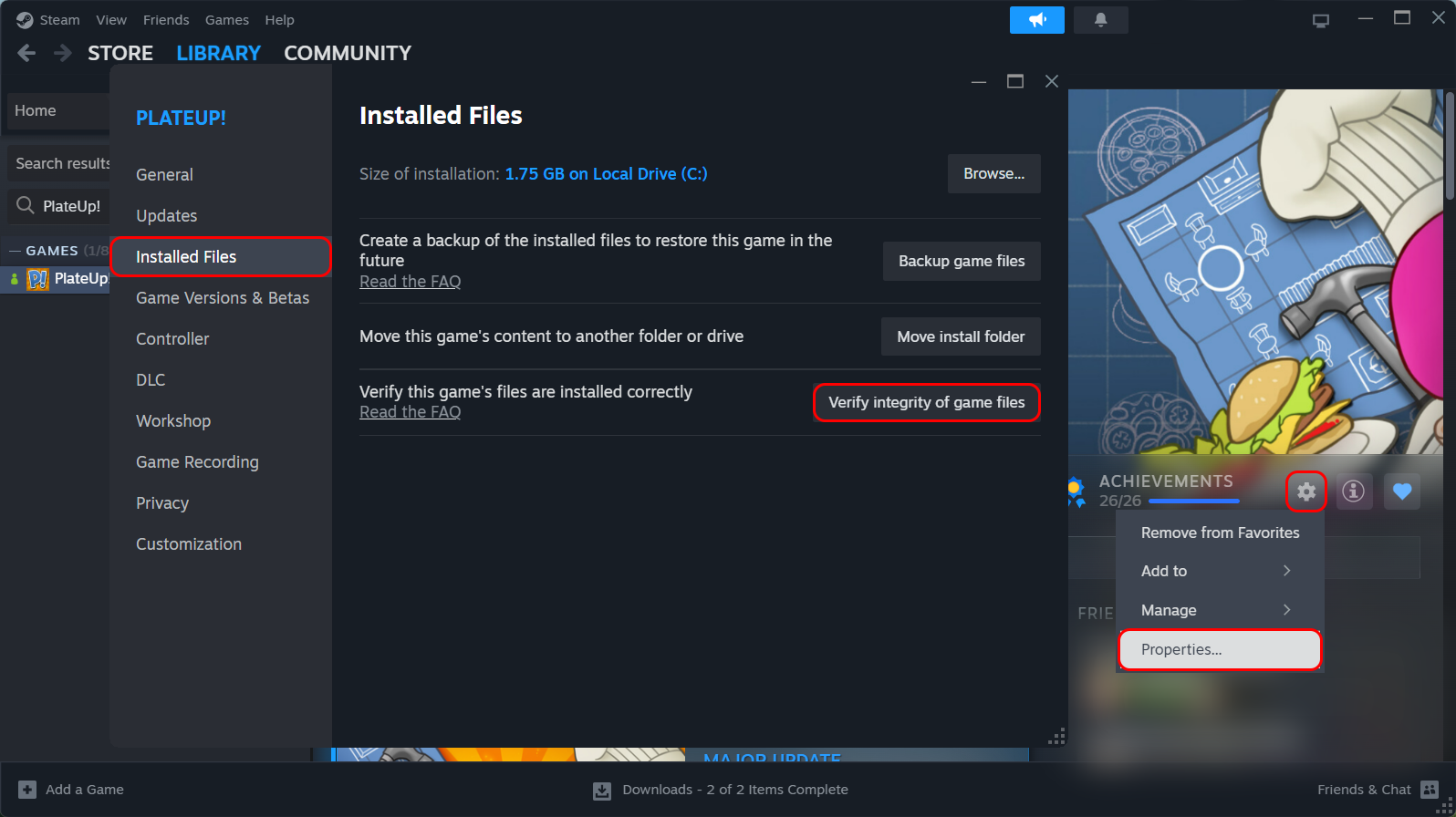 - Go to Properties → Installed Files → Verify Integrity of Game Files